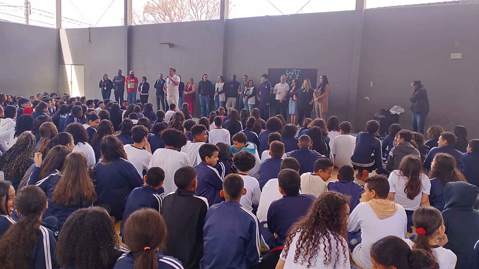 A EMEF Armando Cavazza, da rede municipal de Barueri, viveu, na última semana, um momento de grande orgulho e emoção ao homenagear o aluno Kaio Eugênio, do 9º ano, pelas expressivas conquistas na OBMEP (Olimpíada Brasileira de Matemática das Escolas Públicas). O estudante foi medalhista de ouro na edição de 2023 e prata em 2024, consolidando-se como um dos grandes talentos da matemática na rede pública nacional e já está de olho no ouro de 2025.