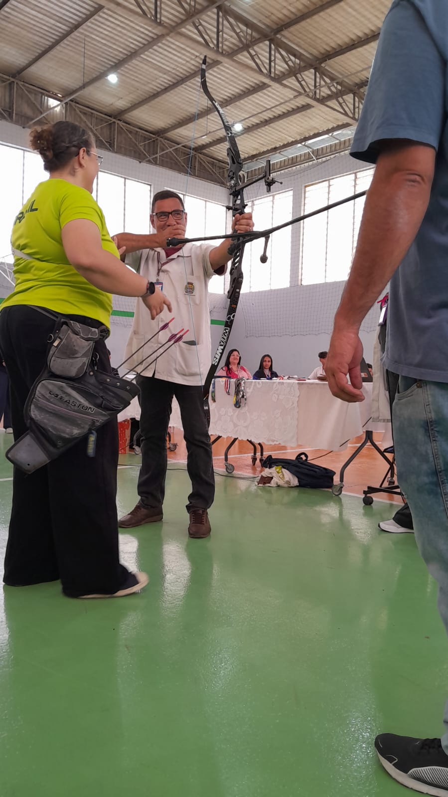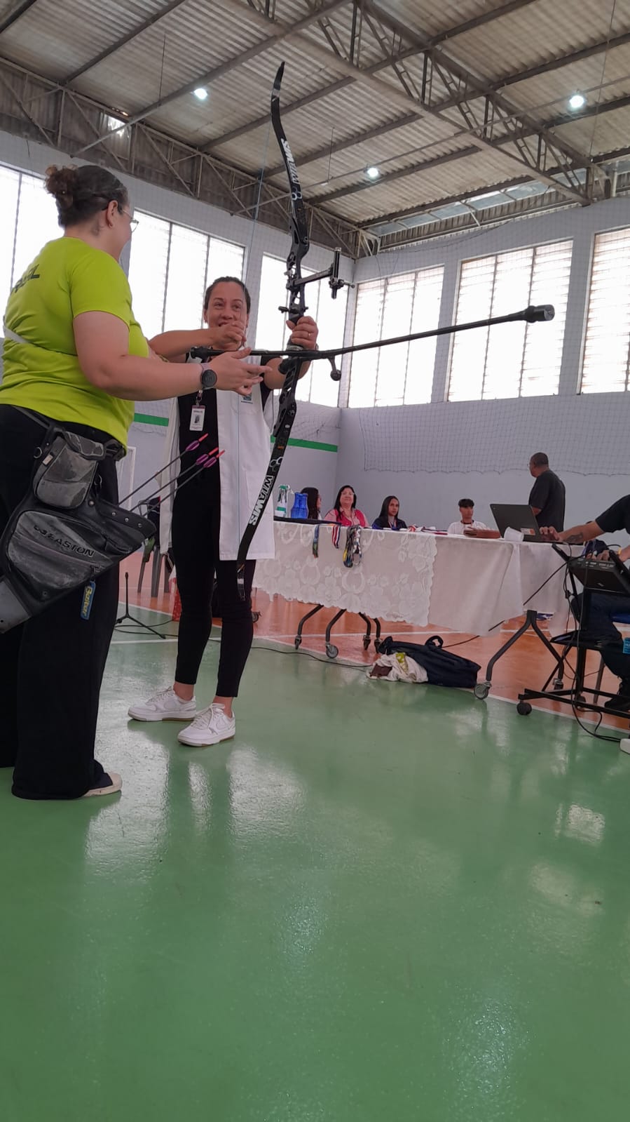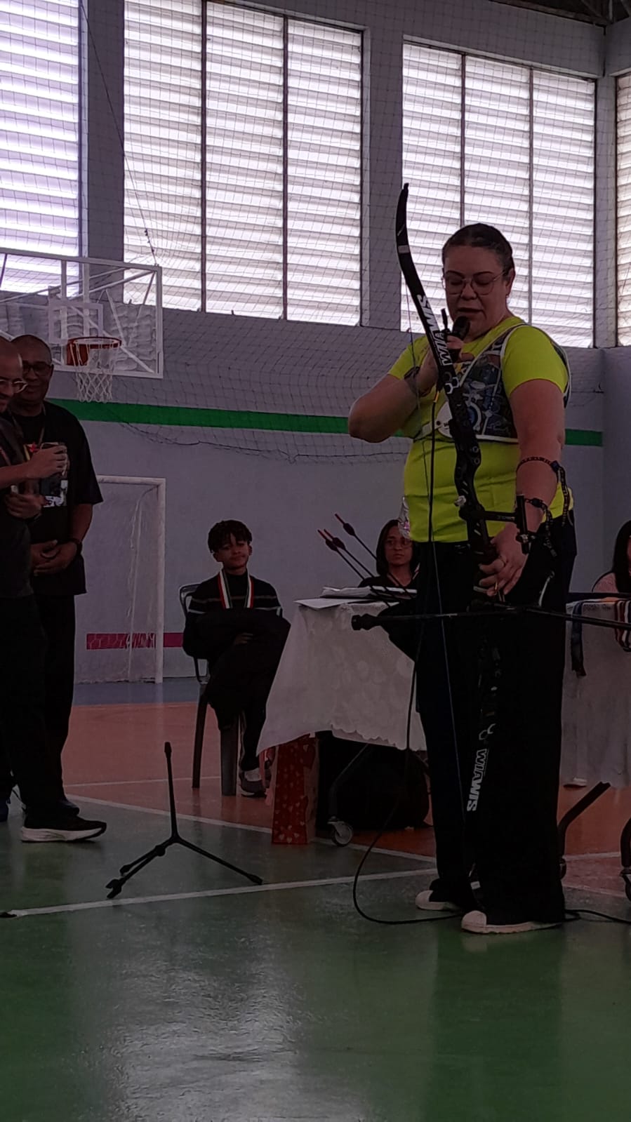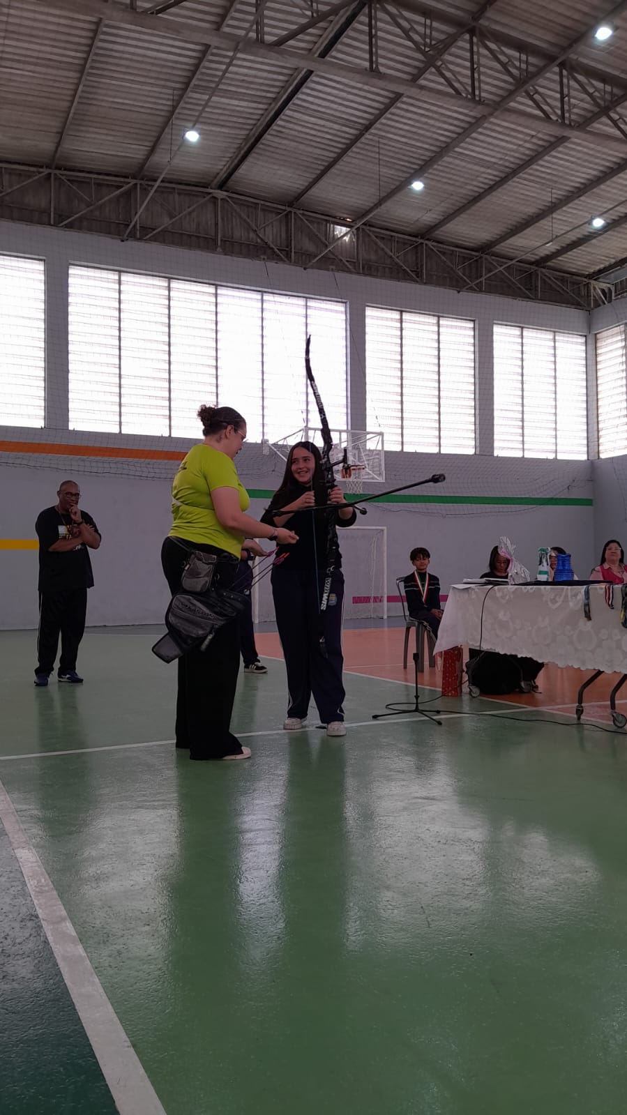 Em seguida, Sarah compartilhou histórias de sua trajetória esportiva e falou sobre superação, disciplina e foco. Um dos momentos mais marcantes foi quando ela colocou suas medalhas no pescoço dos alunos, permitindo que sentissem literalmente o “peso da conquista”. “Tudo é possível quando acreditamos e trabalhamos pelos nossos sonhos”, destacou a atleta. Professores e servidores também participaram da dinâmica, experimentando o arco e vivendo brevemente a sensação de ser arqueiro por um dia.