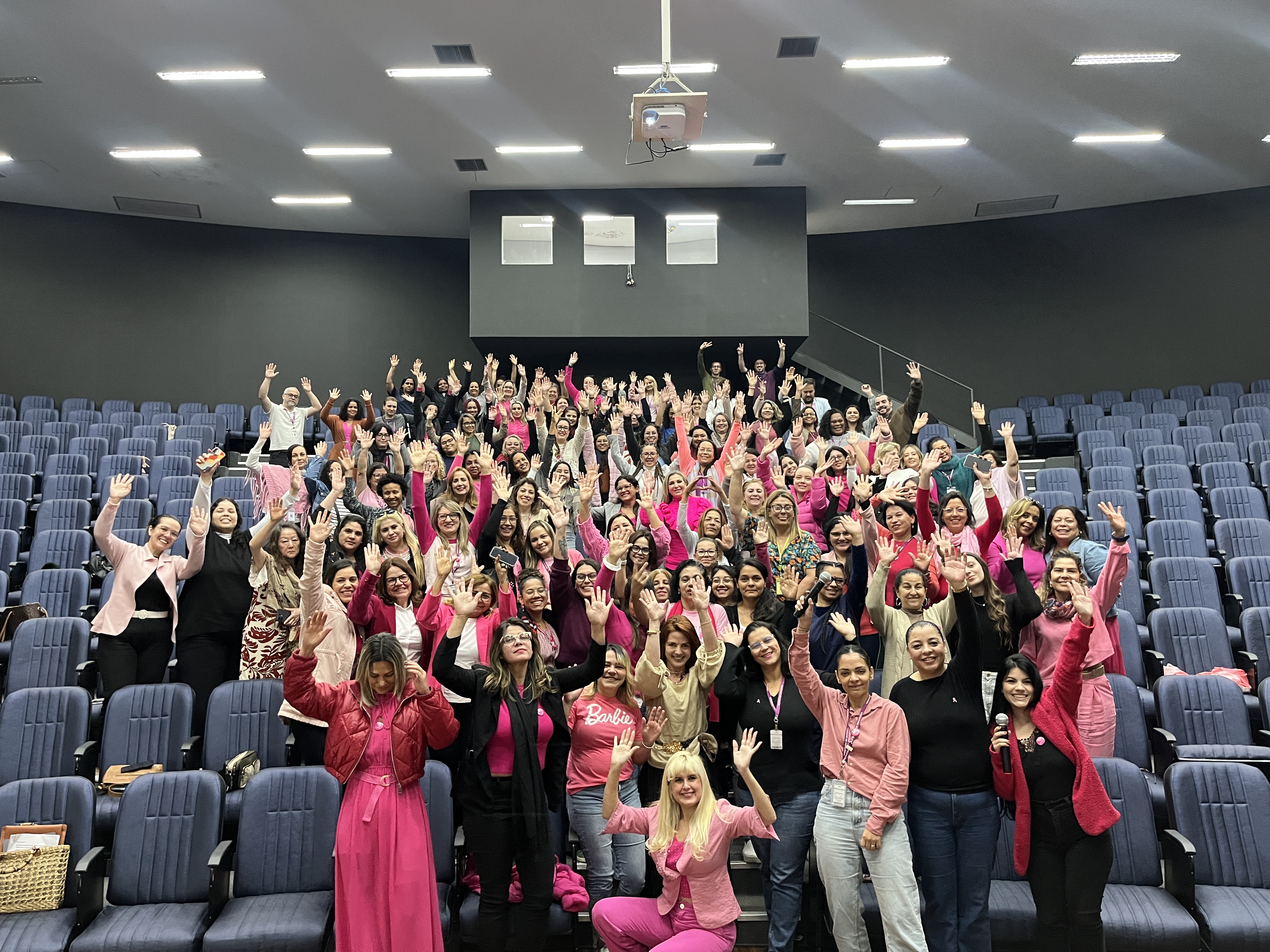 A ocasião contou com a presença de diversas servidoras da secretaria e representantes das unidades escolares, que participaram ativamente de uma palestra ministrada pela ginecologista Dra. Renata de Camargo Menezes, profissional da rede municipal de saúde.