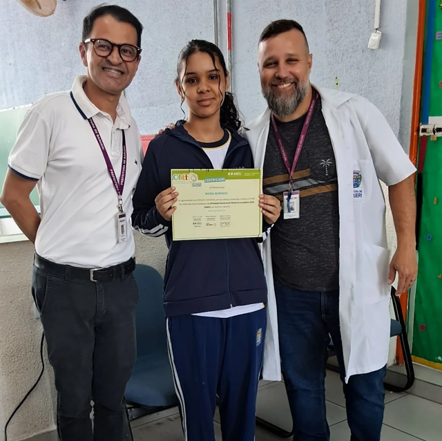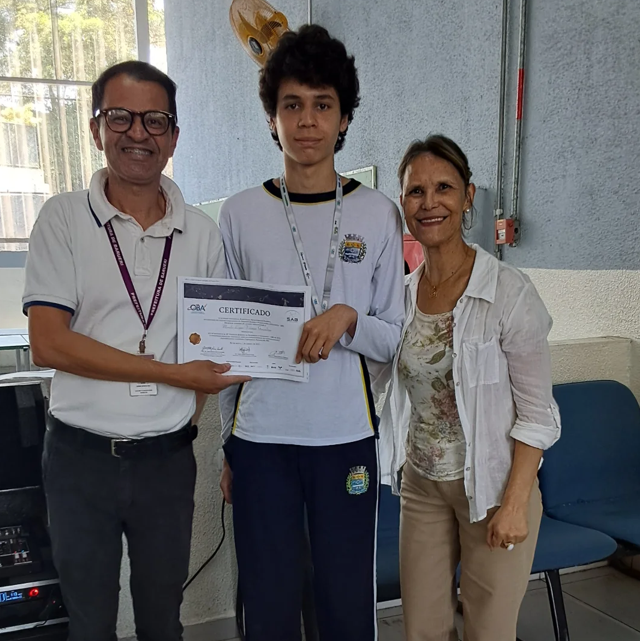 A Secretaria de Educação parabeniza todos os estudantes premiados, seus respectivos professores e toda a equipe gestora pelas conquistas, que reafirmam o potencial transformador da educação de Barueri, e também ressalta o importante reconhecimento concedido ao professor Wellington, docente de Ciências da escola, agraciado com a medalha “Honra ao Mestre da OBA”, premiação que homenageia seu comprometimento, dedicação e atuação fundamental no processo formativo dos estudantes.