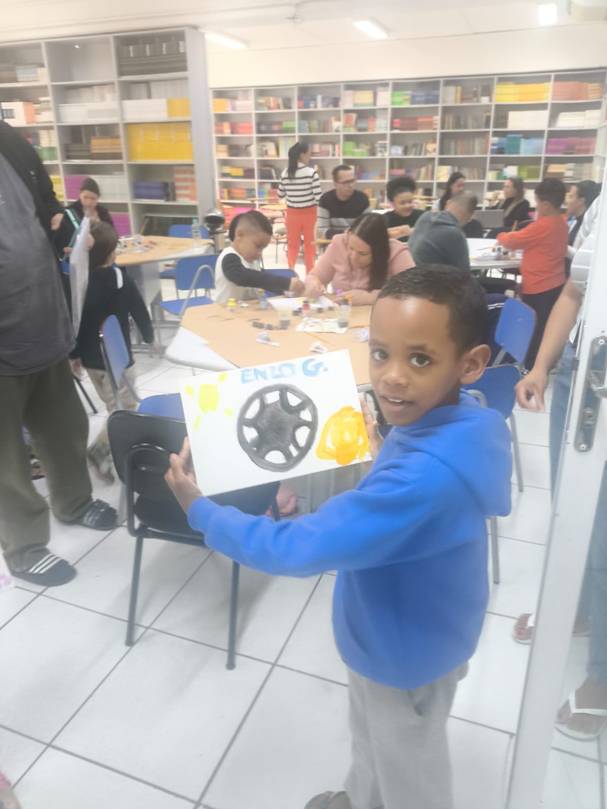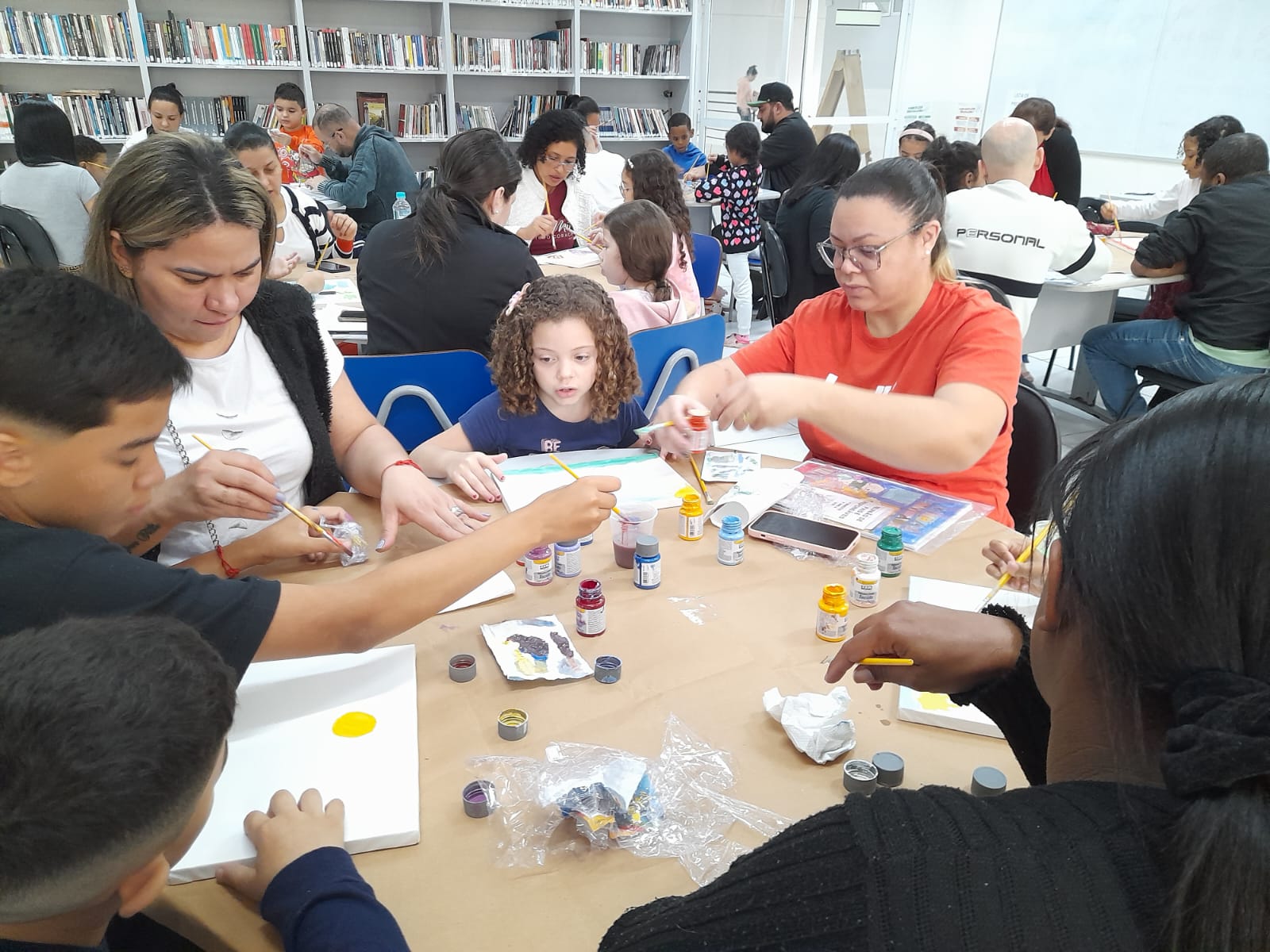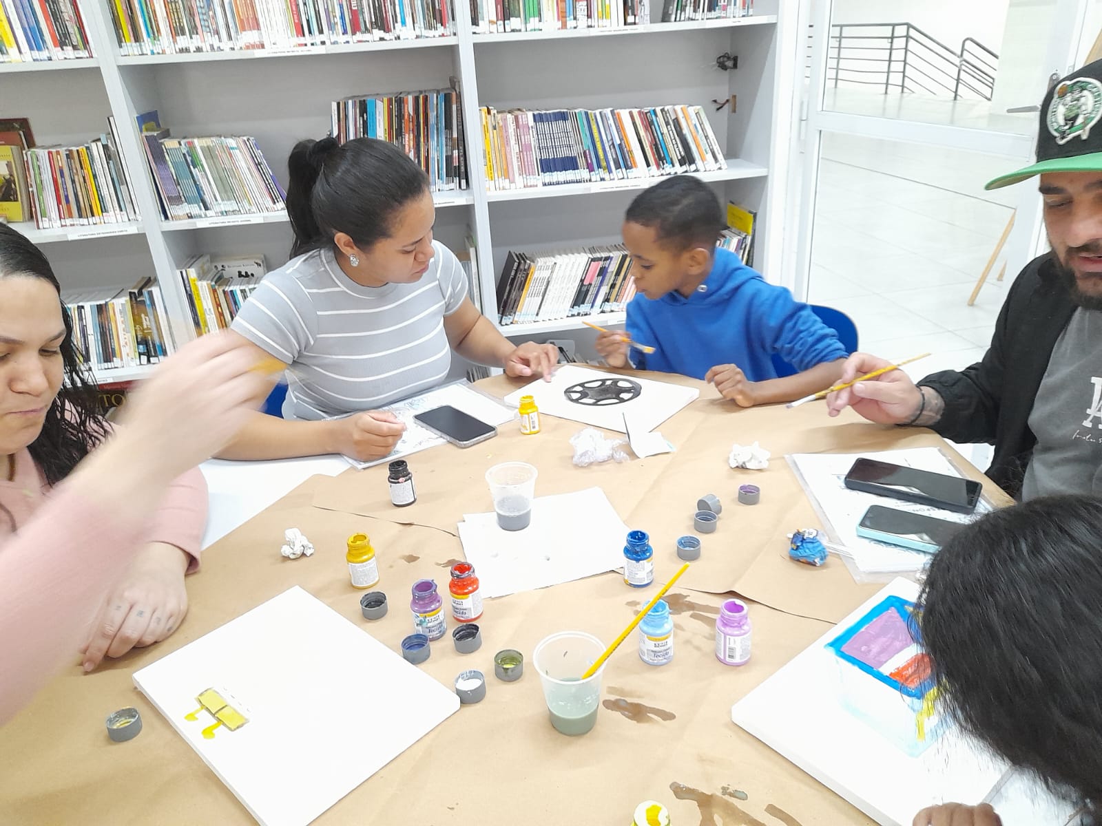 • Oficina de pintura em tela realizada com os pais e a comunidade, promovendo integração e valorizando o protagonismo das famílias no processo educativo.